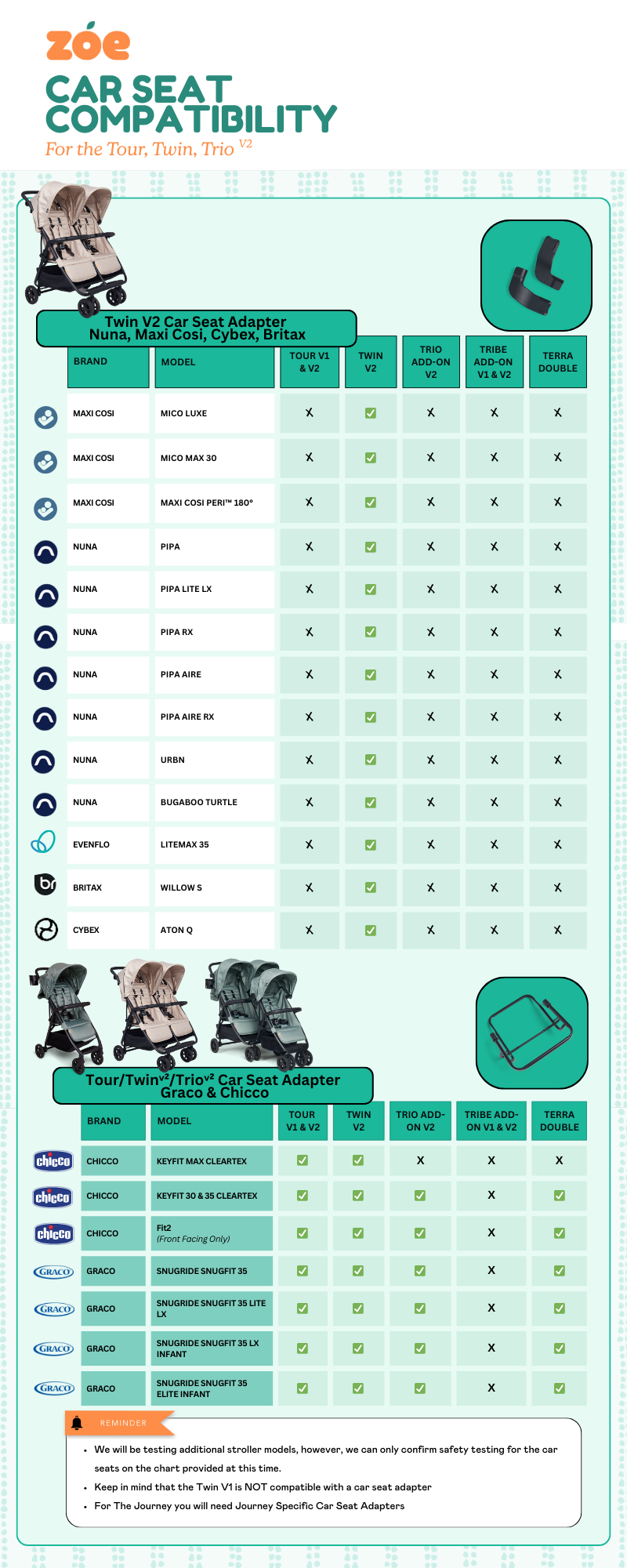 • The Trioᵛ² Add-on Seat is compatible with the Graco & Chicco Car Seat Adapter. However, the Tribe and the Tandem are not compatible.