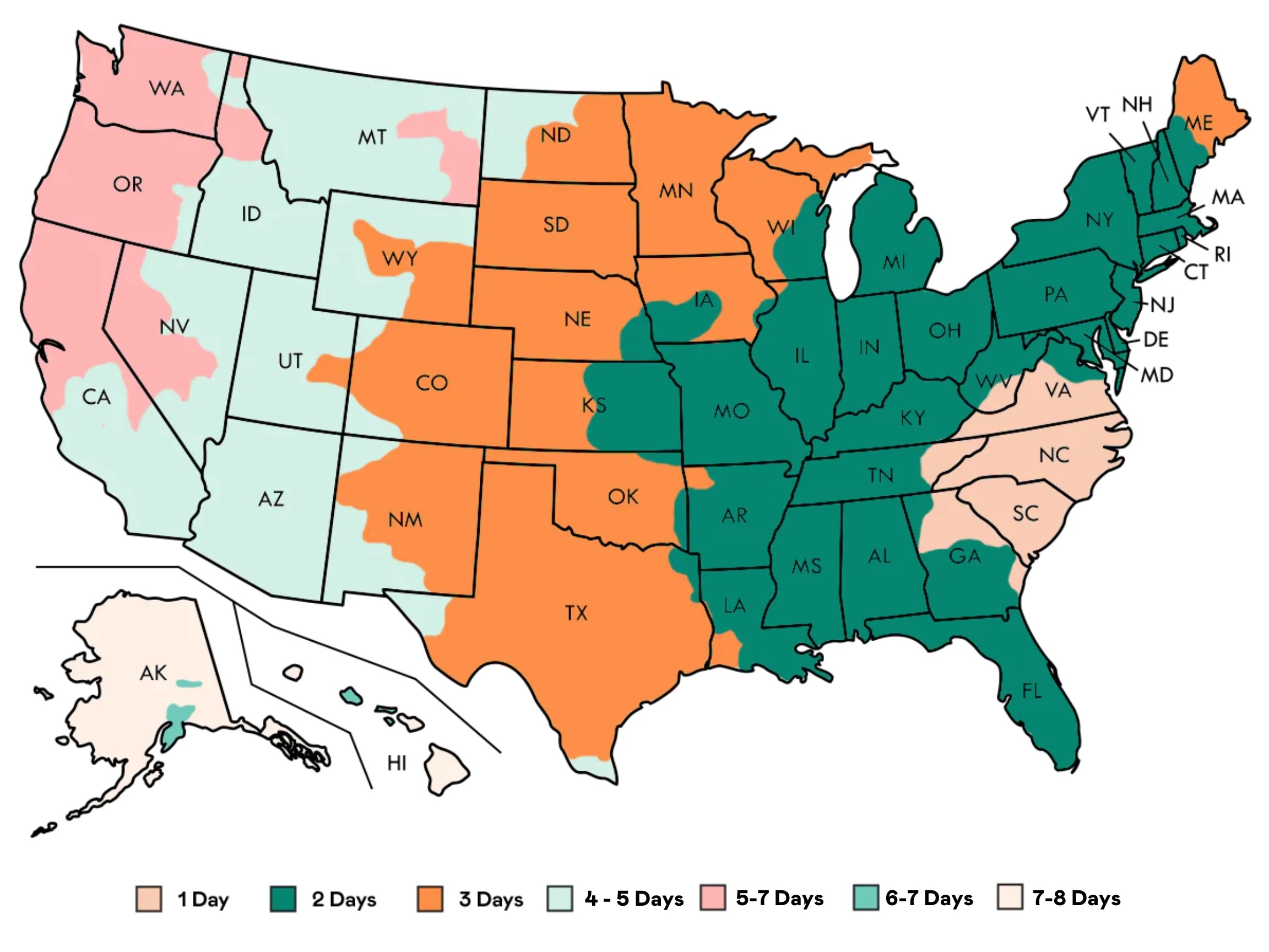 Your order is taking longer than expected to arrive. If your package is in transit, our carriers (FedEx and USPS) may be experiencing delays that are impacting delivery. Ground shipping times vary, but the chart below give you a reference point for expected delivery dates based on your location: